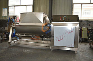 真空滾揉機 工作原理 真空滾揉機在真空狀態下,利用物理沖擊原理,讓肉塊或肉餡在滾筒內上下翻動,相互撞擊、摔打,從而達到腌漬作用。腌漬液被肉充分地吸收,增強肉的結合力及彈性,...