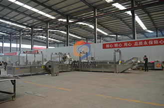 蔬菜清洗加工生產流水線也稱蔬菜清洗流水線,是將新采摘的蔬菜,經過整理(如去掉不可食部分、脫皮、去雜等)、洗滌、消毒等加工操作,然后在無菌環境中,真空包裝制成成品的全自動流水作業。大部分操作工藝完全取代手工加工,是食品加工最得力的助手。
